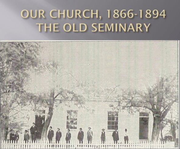 The three church buildings of St Paul’s Lutheran Church. The “Seminary” building used from 1866-1894; The Church that opened in 1894; A color picture of the 1894 Church from approx.…